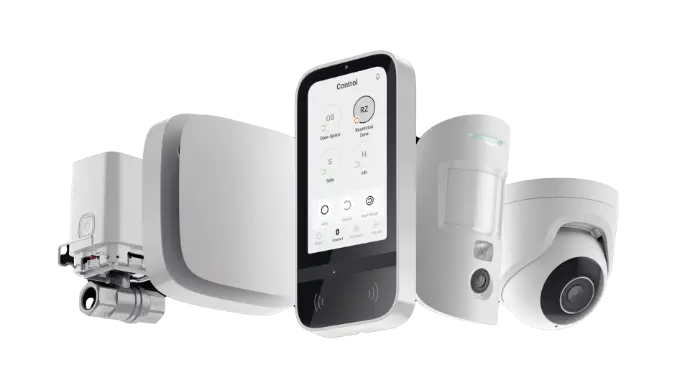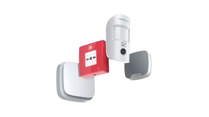 Dispositivos inalámbricos de seguridad para interiores y exteriores.
